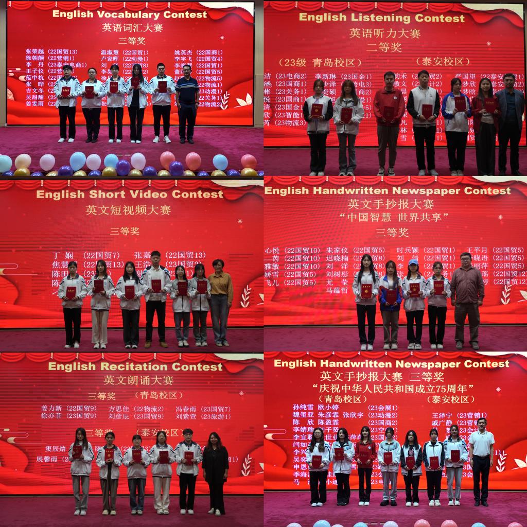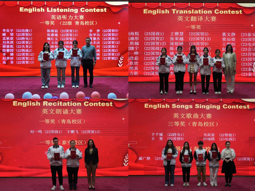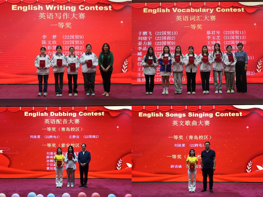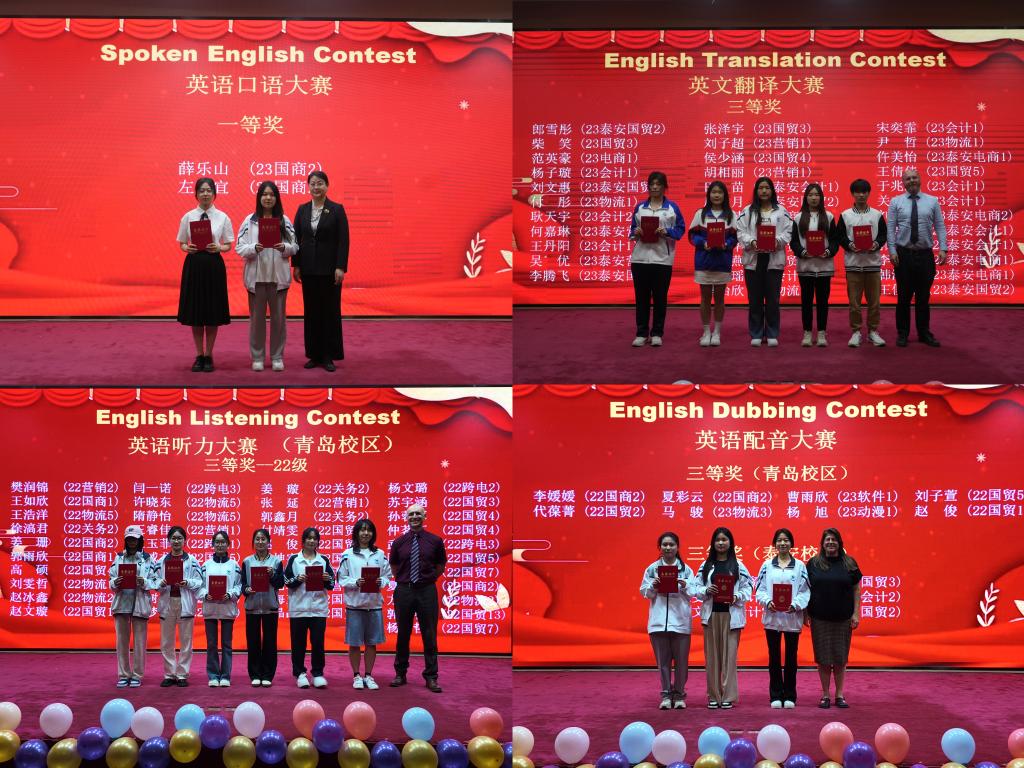 本届英语文化节由公共英语部、泰安教学部、团委、学生工作处及国际交流合作处共同主办,为期两个月。期间,“金牌挑战”和“文化体验”两大系列活动同时开展,包括10项创意赛事、7场英语沙龙和14场精彩讲座。泰安新校区通过设立分赛场、同步直播等形式参与了文化节各项活动。多彩活动是我院校园文化的浓缩,营造了积极向上、清新高雅、健康文明的校园文化氛围,展现了学生努力奋进的精神风貌,彰显我院“外”字办学特色。