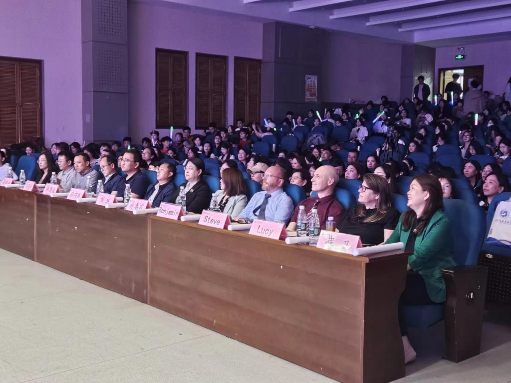 5月30日晚,第十五届英语文化节闭幕式暨颁奖典礼在图书馆二楼学术报告厅举行。学院副院长刘珉、行政部门和教学系部负责人、外籍教师Steve、Benjamin和Lucy、公共英语部全体教师及部分获奖学生代表参加。