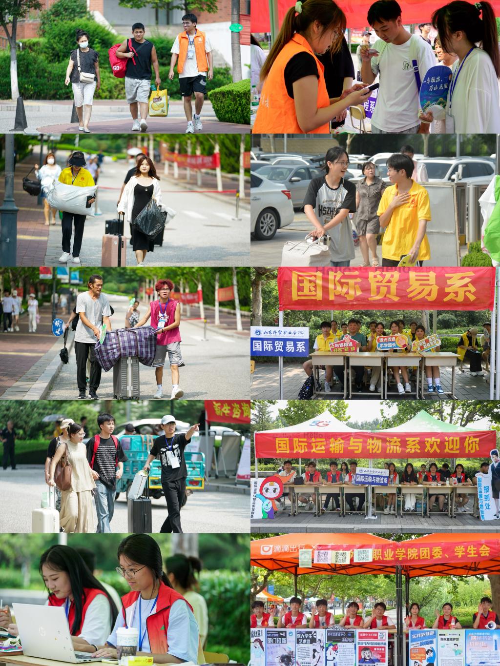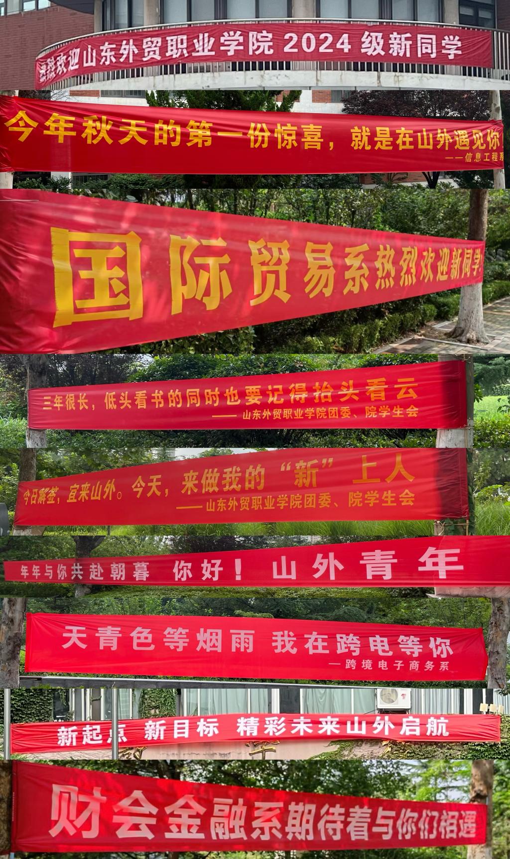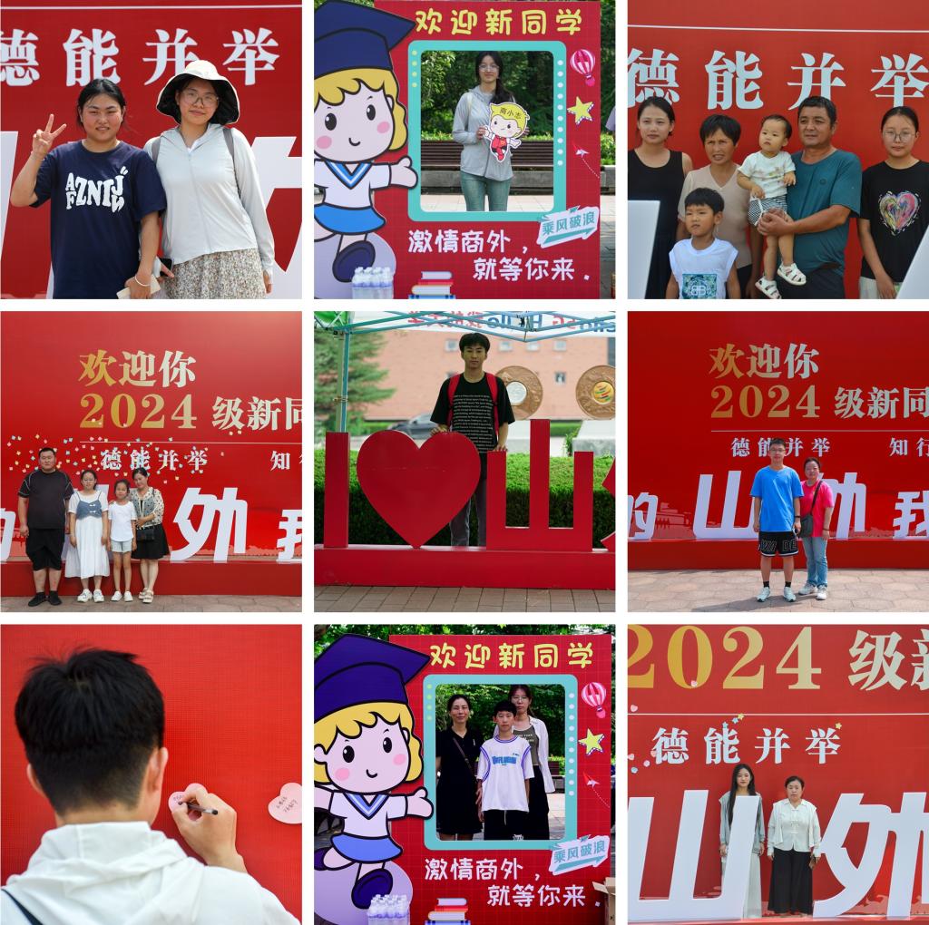 报到当日,块块展板、条条横幅,给予专属于山外萌新的满满仪式感。各系部、各部门的老师和志愿者们早早就位,用最充足的准备,欢迎2024级新同学。青岛校区图书馆前的“数智迎新”大屏上,分时段报到人数、系部进度一览等信息一目了然,“直播”当天报到进度。