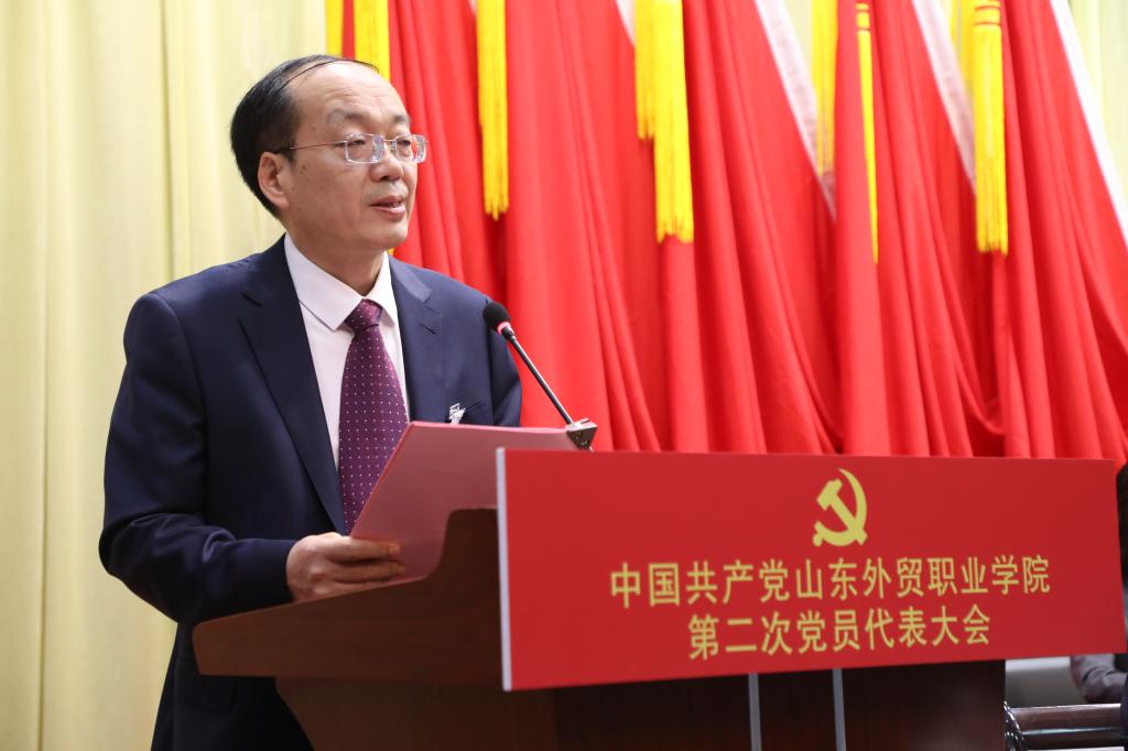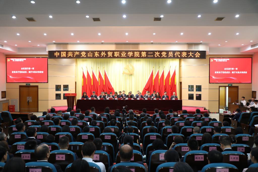 中国共产党买球体育平台第二次党员代表大会9月27日召开。省商务厅党组成员、副厅长张庆伟出席大会并讲话。学院党委书记孙光伟代表学院第一届党委作了题为《改革创新谋发展 凝心聚力建新功 为加快建设行业领先、特色鲜明、全国一流的高水平高职学校而奋斗》的报告。学院第一届纪委向大会作了书面工作报告。大会审议通过了《关于中国共产党买球体育平台第一届委员会报告的决议》《关于中国共产党买球体育平台第一届纪律检查委员会工作报告的决议》并选举产生中国共产党买球体育平台第二届委员会和纪律检查委员会。学校领导班子成员等109名党员代表出席会议,党外人士和有关部门负责同志列席大会。