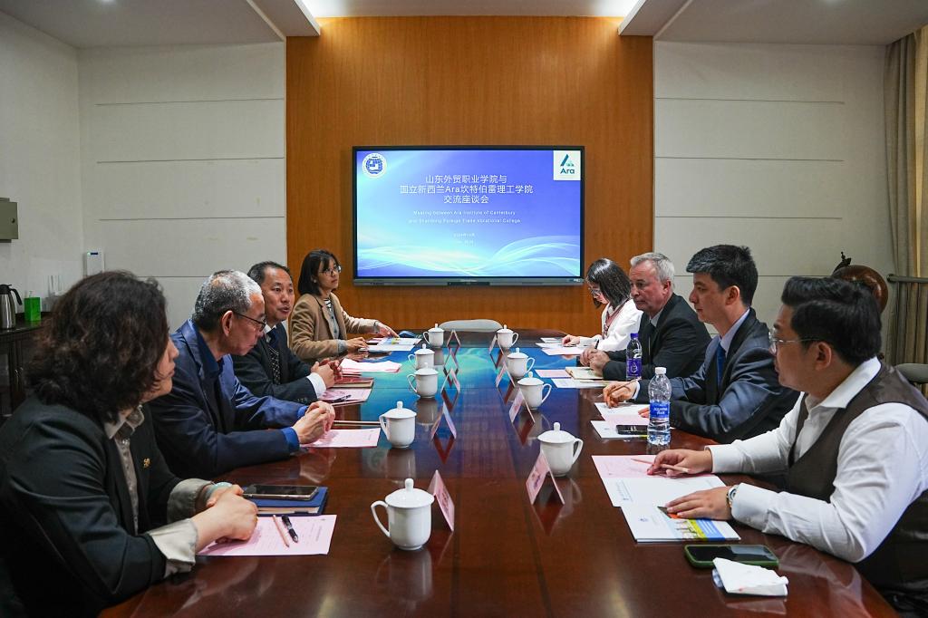 10月30日,国立新西兰Ara坎特伯雷理工学院校长Darren·Mitchell一行来我院交流访问。副院长孙巧奎接待来宾并进行座谈,国际交流合作处、财会金融系等部门负责人参加座谈。