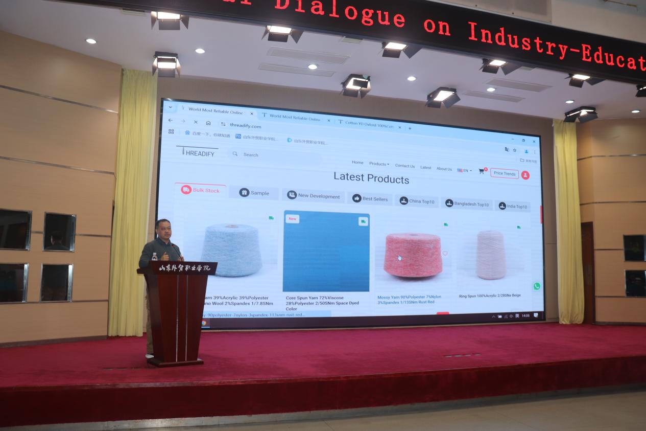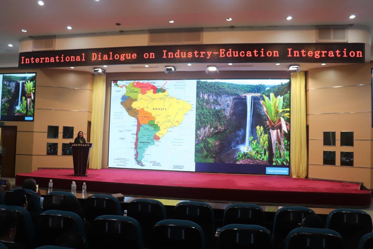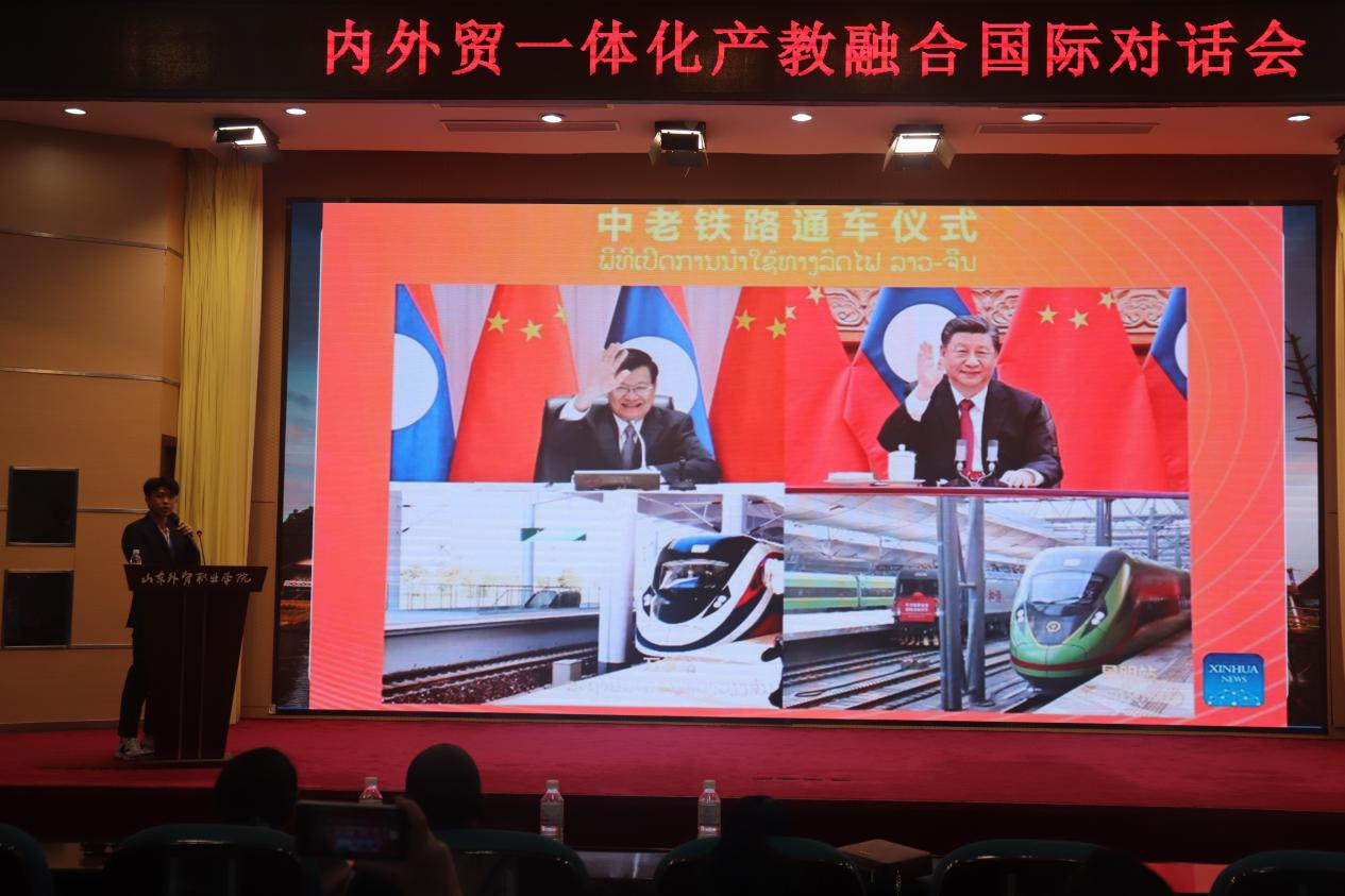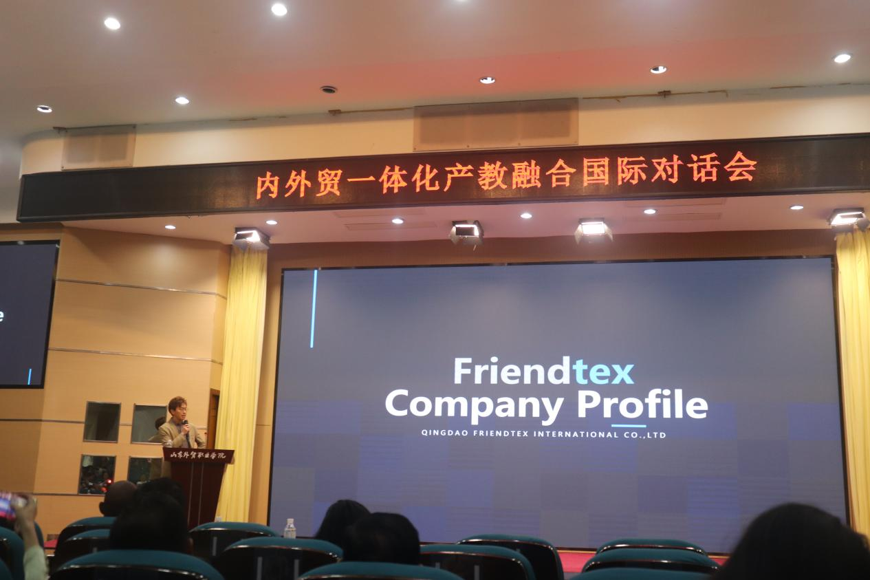 下午的内外贸一体化产教融合国际对话会由国际贸易系主任刘希全主持,威海倍佳贸易公司总经理89级校友伊善潍、青岛益诚戴客贸易公司总经理98级校友张苗、青岛三格建筑科技公司总经理07级校友翟存仓、青岛孚伦达商贸公司销售经理14级校友李尧和来自老挝、莱索托、尼泊尔、南非、苏里南的援外培训班学员代表做了对话发言。校友们介绍了各自企业内外贸一体化发展的现状、产教融合发展经验和未来发展规划,援外班学员代表也介绍了各自国家和企业发展现状及对接需求。最后校友企业和援外班学员开展自由对话交流。部分返校参加校庆活动的校友和在校生观摩对话并参加自由对话交流。对话会力图发挥学院平台资源集聚优势,帮助广大校友企业招聘国内外优秀人才、对接业务、开拓市场,深化产教融合,加强国际间文化交流和经济合作,服务大国外交。