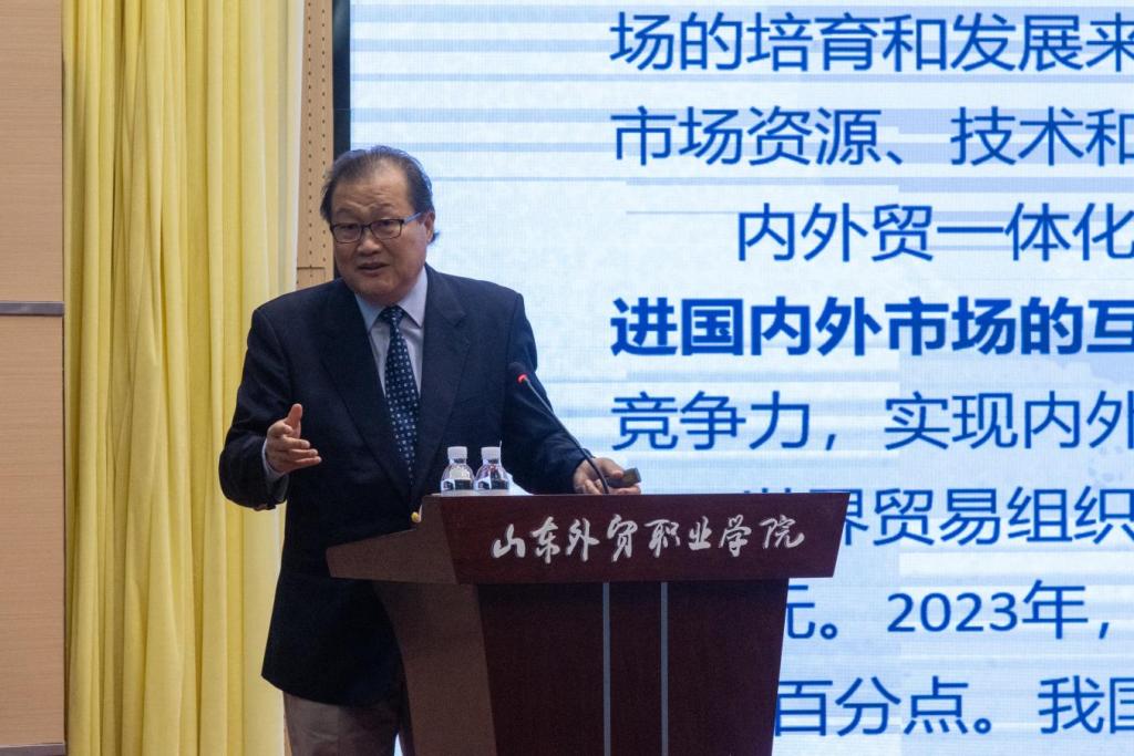 上午的专家讲座由院长刘珉主持,邀请了中国国际贸易学会会长金旭教授和中国教育科学研究院职业与继续教育研究所原所长孙诚研究员两位专家主讲。金旭会长以《国际经贸形势与内外贸一体化》为题,从美国大选切入,深入浅出的介绍了当前国际经贸形势和内外贸一体化发展的必然要求,并以“一带一路”合作为例,介绍了当前内外贸一体化发展的现状及对人才培养带来的影响。孙诚所长以《职业教育高质量发展的内涵、路径和策略》为题,从现代化产业体系建设入手,着重介绍了产教融合职业教育体系的建设任务、要求和范例,从职业教育角度解读了内外贸一体化人才培养的新思路。两位专家的讲座高屋建瓴、立意深远,为我院未来人才培养和高质量发展指明了方向。