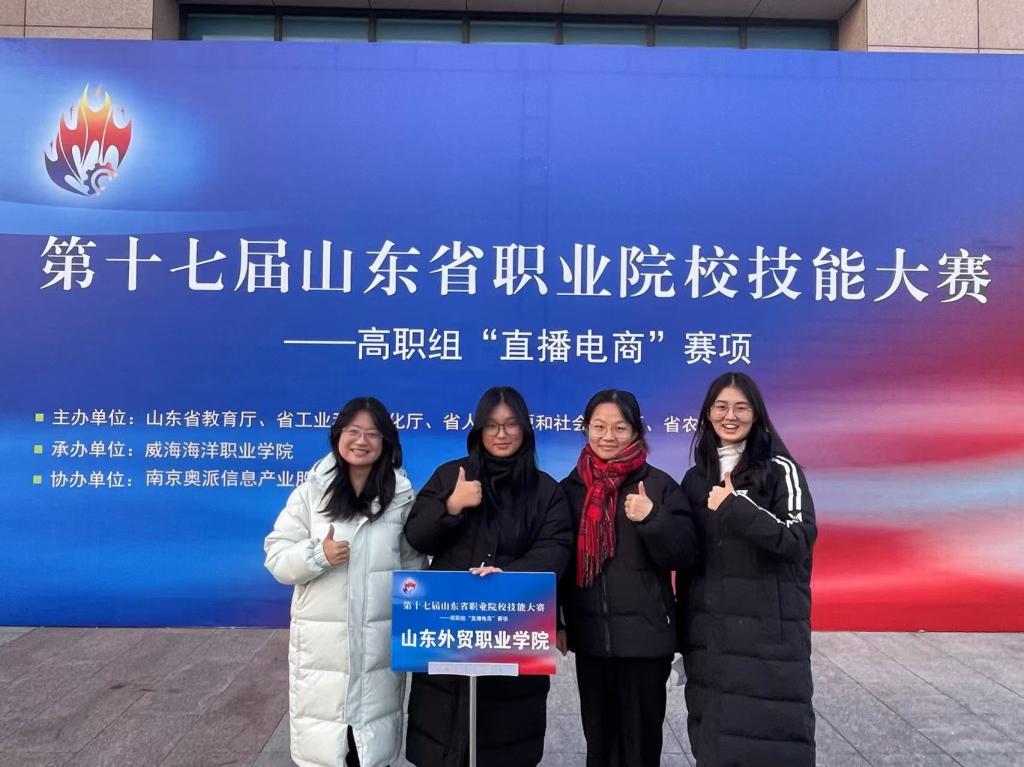 近日,第十七届山东省职业院校技能大赛高职组“直播电商”赛项圆满落幕,全省共有62所高职院校队伍参赛。由跨境电子商务系闫静雯、宗胜春老师指导,翟羽佳、孙丽君、韩丽娜、王雪晴等组成的参赛团队代表我院参赛,经过激烈角逐,荣获一等奖。