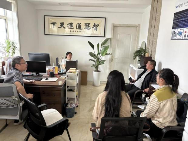 国际经济与贸易教师团队走进外贸孵化器企业朗新集团,指导接受孵化的初创外贸企业利用人工智能技术助力开拓国际市场,交流人工智能在数字贸易、直播电商中的应用,探讨“人工智能+外经贸职业教育”对山东特色产业带的外贸赋能作用。