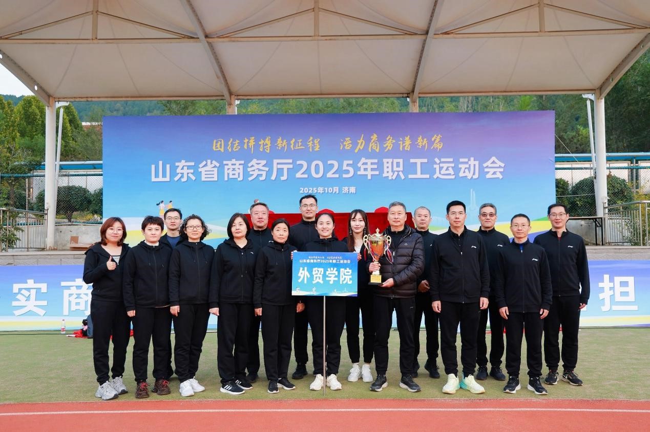 10月23日,2025年山东省商务厅职工运动会在济南艺术学校举行,来自厅机关、驻厅纪检监察组及各直属单位的10支代表队的300余名职工参加比赛。我院由党委书记孙光伟担任领队、党委副书记黄维担任队长,共有17名教职工组成的代表队参加了全部赛事。