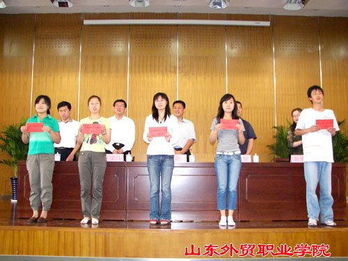 高忠骥副总经理宣读了获奖学生和集体的名单。05级会计电算化一班丁晓强,05级国贸十班王菲分别作为获奖集体、个人代表作了发言,他们均表示在以后的学习生活中会对自己提出更高的要求,以优异的成绩回报学校,回报社会。唐海总经理对我院的教学设施、办学特色、取得的社会和经济效益给予了高度评价,并殷切希望获奖同学不辜负老师和家长期望,再接再厉、争创佳绩。