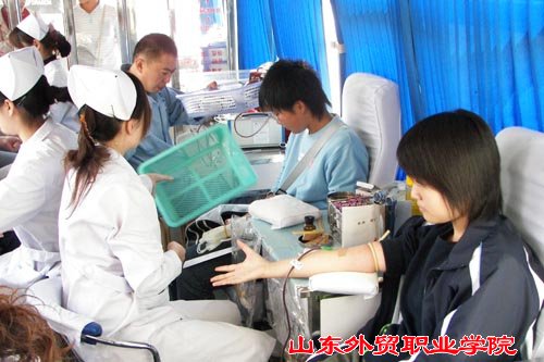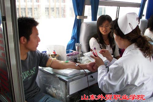 上午10点,青岛市红十字会血站派出两辆采血车在北校区新图书馆广场进行现场采血。参加无偿献血的学生就络绎不绝,至下午5点,共有260多外贸学子奉献了自己的真情和爱心。