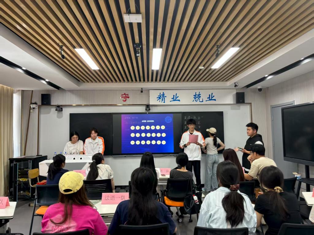 竞赛采取线上初赛、线下决赛的形式,共吸引了我系各专业300余名学生参加了初赛,通过初赛,最终选拔出来自商务英语、商务日语、应用韩语、应用法语和应用西班牙语5个专业的14名学生参加线下决赛。经过决赛中两轮的激烈比拼,最终2024级应用法语专业冯镜予和卢云飞同学组成的法语一队拔得头筹,荣获一等奖,其他专业学生组成的队伍也都凭借出色的发挥赛出了好成绩。学生们纷纷表示,此次竞赛活动形式新颖,内涵丰富,是一次难得的学习体验。