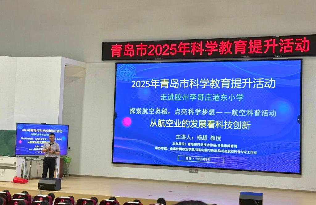 近日,国际运输与物流系“杨超航空科普专家工作室”团队精心策划的以“探索航空奥秘,点亮科学梦想”为主题的科学家进校园——2025年青岛市教育提升活动圆满落幕。团队历时数月,深入青岛市多所中小学开展17场系列科普活动,以专业视角与趣味形式解码航空奥秘,惠及5554名青少年,为青岛市科学教育提升注入强劲动力。