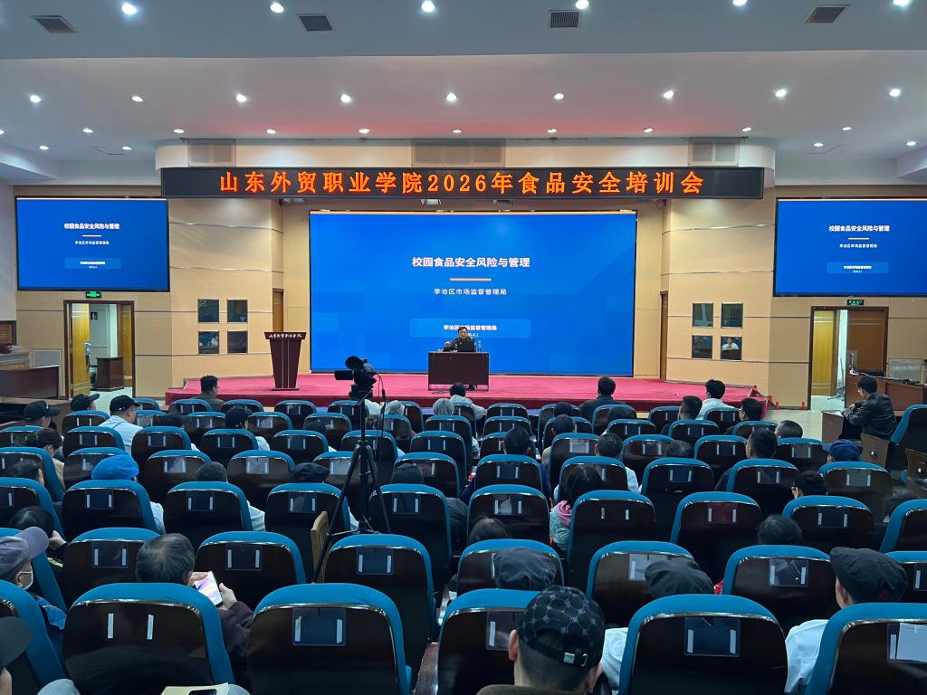 为进一步筑牢校园食品安全防线,规范餐饮服务操作流程,4月1日下午,学院后勤服务处在学术报告厅举办食品安全风险与管理专题培训。本次培训邀请李沧区市场监督管理局副局长高大勇主讲,学院食品安全管理人员及全体餐饮从业人员参加了培训。