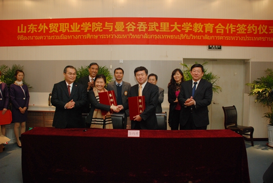 买球体育平台和吞武里大学于2011年9月建立友好合作关系。两年来,双方师生多次互访,彼此了解加深。2013年10月学院派遣程诚、李钰两位老师到吞武里大学教授汉语。这次教育合作协议的签订是双方加强合作、共同发展的一个重要里程碑。