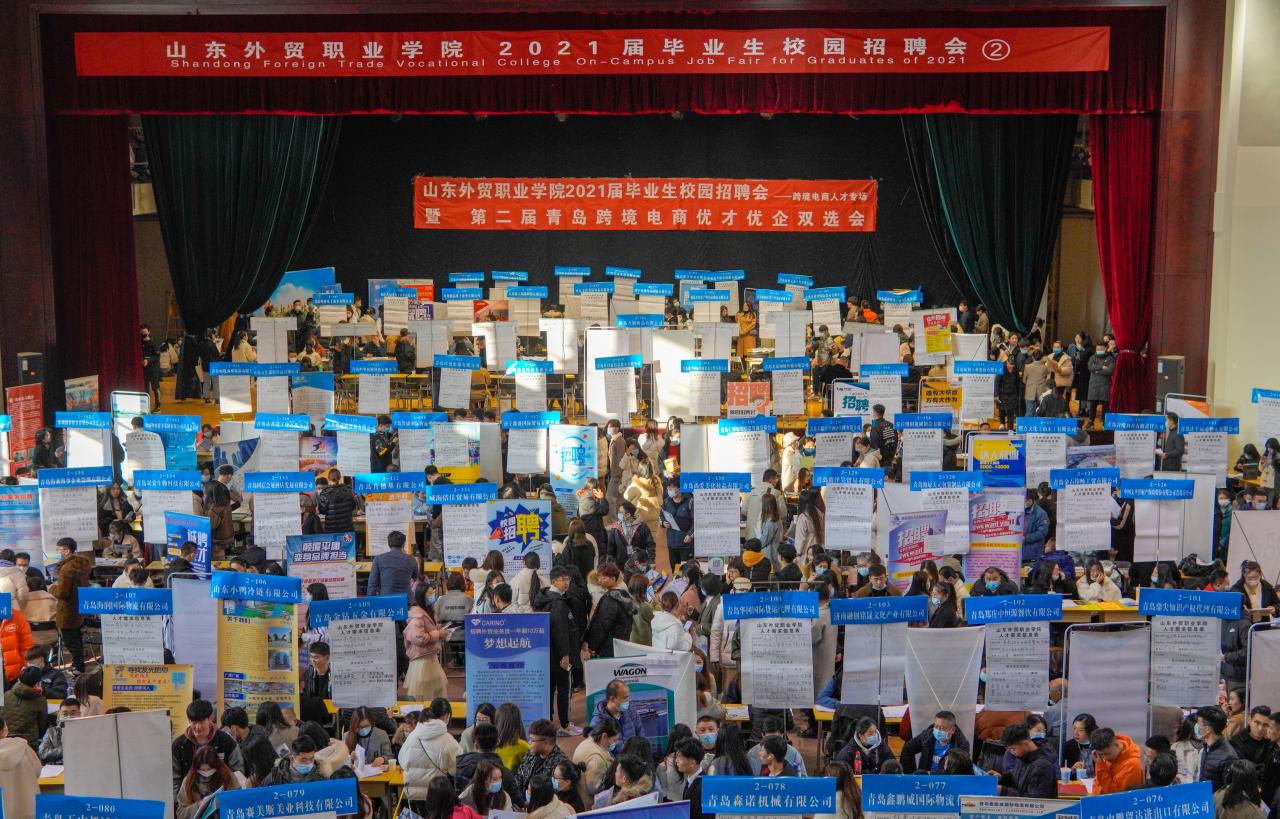 12月5日-6日,学院2021届毕业生首场校园招聘会在青岛李沧校区举行。1100余家用人单位为学院3649名毕业生提供了近1.7万岗位。77.1%的毕业生现场与用人单位达成就业实习意向。