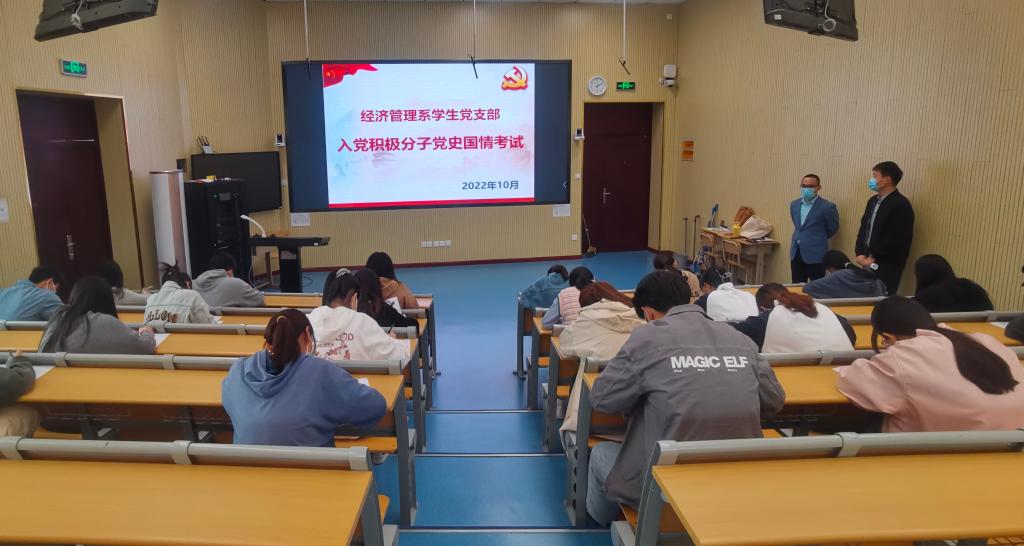 10月6日下午,经济管理系学生党支部在1号教学楼第4阶梯教室组织举办入党积极分子党史国情考试。