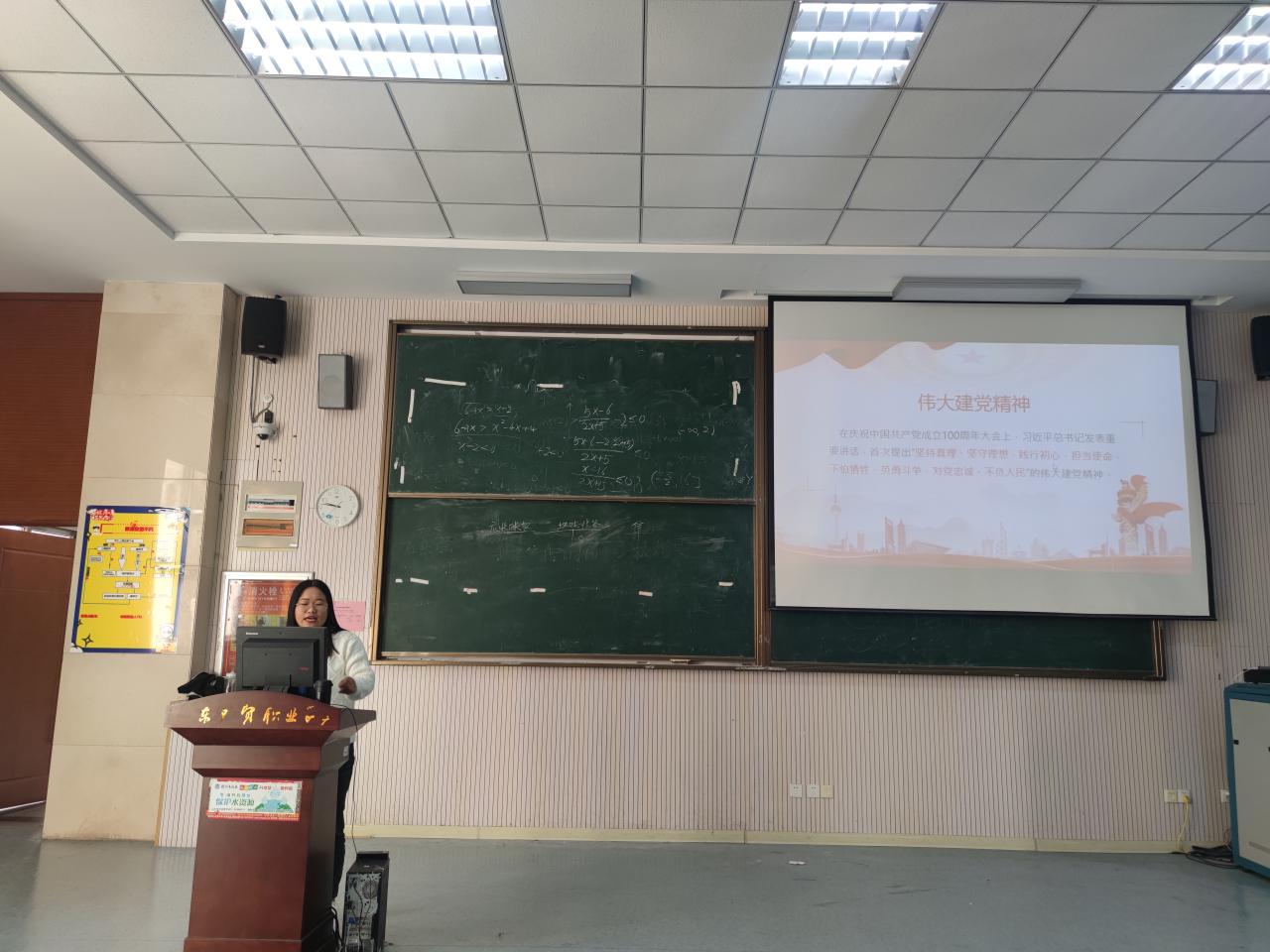 红色旗帜宣讲团围绕“伟大建党精神”主题,采用课堂讲解、集体探讨等方式开展宣讲。宣讲团成员以建党精神的内涵为切入点,以习近平总书记概括出的32字建党伟大精神为主题,将共产党建党百年的伟大品格和辉煌成就用生动的故事讲述出来,呼吁广大青年学生担负起实现中华民族伟大复兴的使命感和责任感,把自己个人梦想融入国家发展、时代进步的大潮中,与祖国共奋进、与时代齐发展。此次宣讲活动,是国际运输与物流系学生党支部爱国主义教育的重要形式,也是传播党的思想,延续红色基因,传承红色精神的重要举措。通过红色旗帜宣讲团把党的宣传工作融入到学生思政教育中,形成朋辈讲、大家学、讲学互动、以讲促学的良好局面。