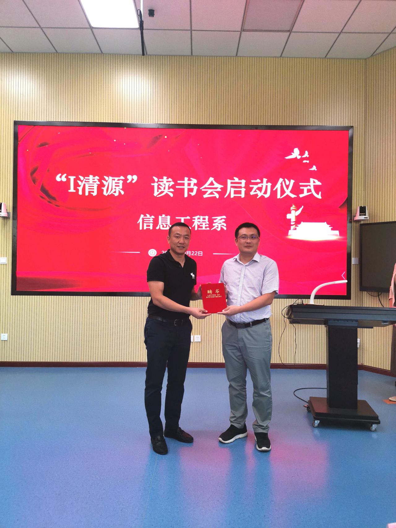 9月22日上午,信息工程系在1号楼第3阶梯教室举行“i清源”读书会启动仪式,副院长高成、系党政领导班子成员出席,系教工党支部代表、学生代表及读书会指导教师参加,仪式由系学工办主任王奉清主持。