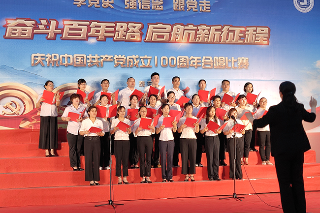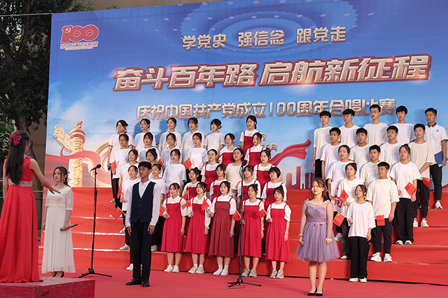 为庆祝中国共产党成立100周年,6月24日晚,泰安教学部举行了以“奋斗百年路·启航新征程”为主题的合唱比赛,所有在校班级参加,教学部班子成员出席活动,并担任比赛评委,为获奖班级颁奖。