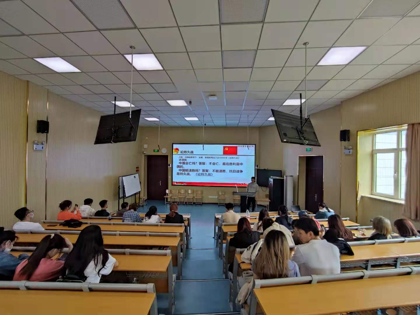 在各级团干部和学生会骨干的带领下,我院团员青年围绕新民主主义革命和社会主义革命和建设时期开展学习。在学习中选取了“论持久战”、“新中国成立”及“社会主义过渡时期建设”等主题展开讲述,同时针对历史中发生的重大事件进行了热烈的讨论。