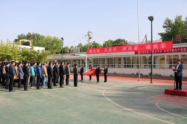 5月6日,泰安教学部全体党员举行“戴党徽、亮身份、树形象、做表率”活动启动仪式。党员同志们站在国旗下,面对党旗,佩戴党员徽章,重温入党誓词,接受党性教育。