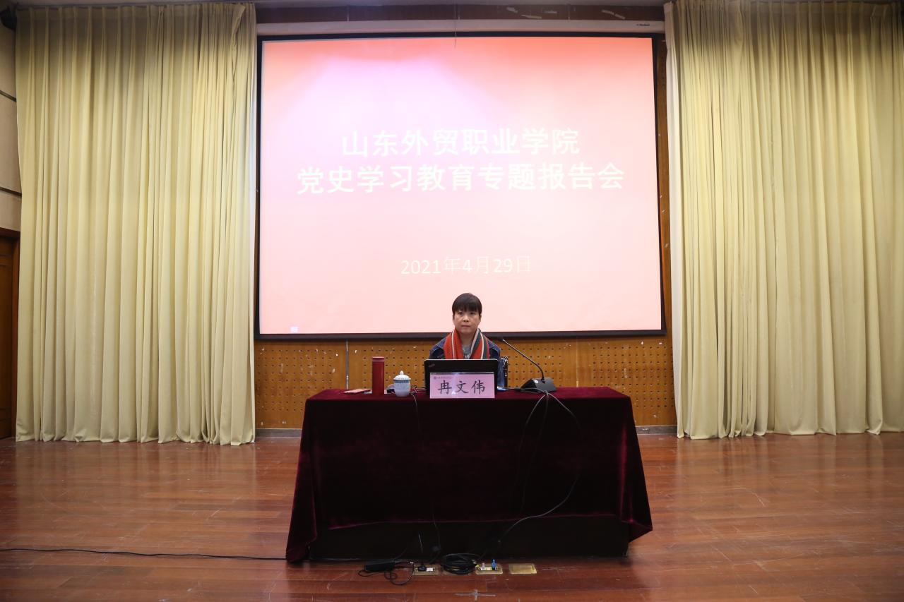 4月29日下午,学院在学术报告厅举行党史学习教育专题报告会,青岛市党史学习教育宣讲团专家、中共青岛市委党校冉文伟同志作了一场题为“中国特色社会主义的光辉历程与宝贵经验”专题报告。学院领导班子成员、中层干部、全体党员及行政教辅人员参加了报告会,泰安教学部的全体领导干部、党员通过网络直播观看了报告会,报告会由党委书记林凌家同志主持。