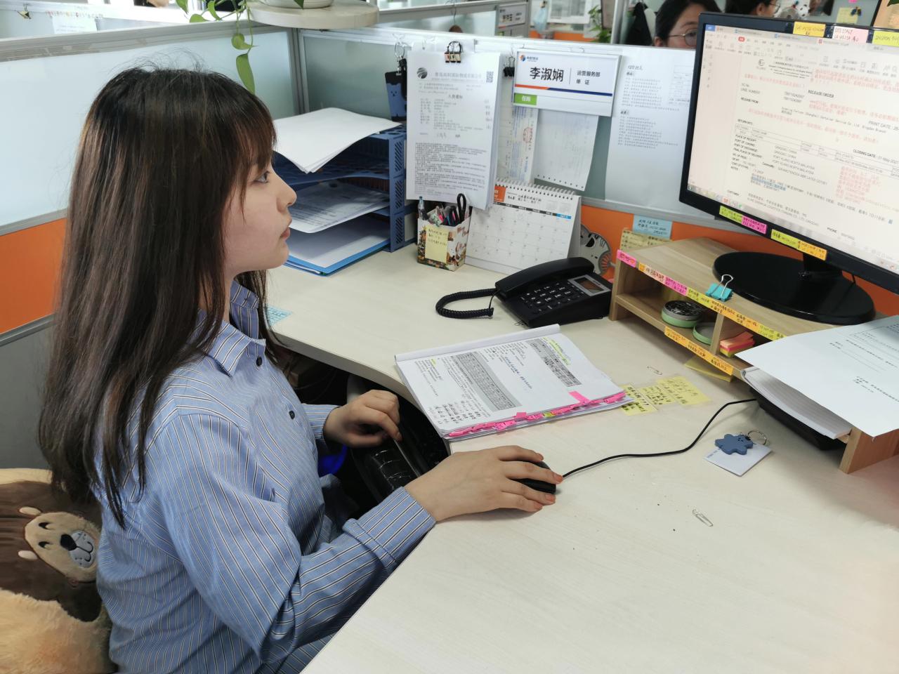 来自2018级报关与国际货运2班的李淑娴是“党员实习示范岗”中的一员,她在学习上不断进取,曾获得校级三等奖学金、社会奖学金;在系部工作中积极主动,曾荣获优秀团干部、优秀学生干部等称号;在课余生活方面,她积极参加学校各项活动,曾荣获我院第十三届心理健康节的DV剧拍摄比赛一等奖(参与拍摄,作品名称:《黑狗》)等。她表示“党员实习示范岗”是一种鼓励,更是一份责任。在青岛高阳国际物流有限公司的实习中她全心全意服务实习单位,模范遵守实习工作制度,遵守实习纪律,做到不怕吃苦,敢于吃苦,敢于挑战,礼貌待人,积极工作,相互合作,服务客户,展现出良好的精神面貌,履行好党员义务,树立起“一个党员一面旗帜”的模范带头作用。作为实习示范岗上的一名学生党员,李淑娴以优秀党员的标准严格要求自己,进一步坚定理想信念,提高党性觉悟,严守政治纪律,勇于担当作为,发挥先锋模范作用。