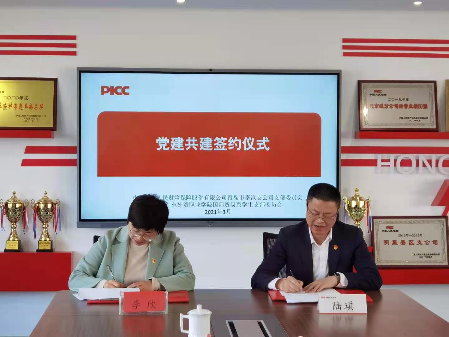 在喜迎中国共产党建党百年之际,3月23日,国际贸易系党总支书记李欣与学生党支部教师党员一行6人赴中国人保李沧支公司开展校企党建共建活动。中国人保李沧支公司总经理、党支部书记陆琪及部分党支部成员参加了活动。