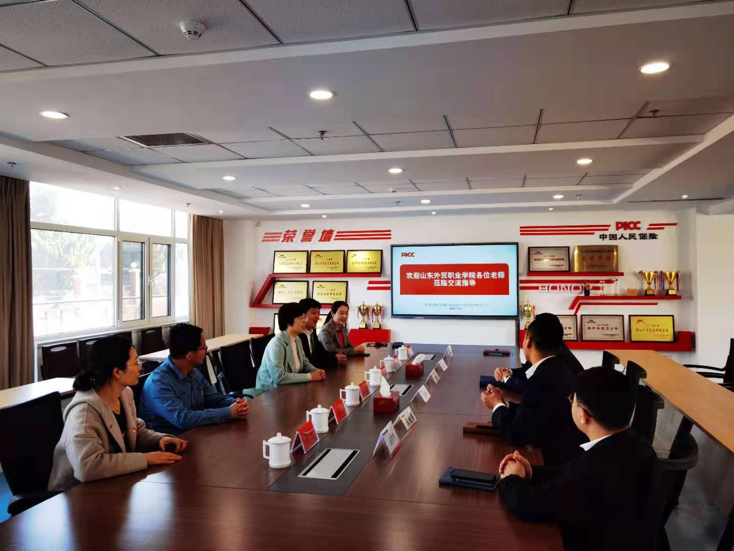 双方在会议室探讨了“校企合作、支部共建”的具体事项。陆琪介绍了中国人保李沧支公司的业务发展和支部开展的多项特色党建活动,李欣简要介绍了国际贸易系的基本情况和党建双创工作。双方均表示要学习借鉴对方的党建活动思路与经验,更好地发挥基层党组织的战斗堡垒作用,以优异成绩迎接建党一百周年。中国人保李沧支公司到会同志均对我院在该司就业的毕业生给与高度评价,双方都希望在共建专家资源库、学生实习就业、校企产教融合方面能有更深度的合作。