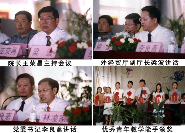 最后,省外贸厅副厅长梁波作了重要讲话。他指出,学院升格为普通高校后,领导班子带领全院教职员工积极拼搏,不断进取,各项工作取得了突出成绩,有力的支持了全省外经贸教育事业的发展。他希望学院结合自身发展实际,以提高学院硬件为基础,以提高教师整体素质为中心,以加强学生德育教育为重点,激发和调动广大教师的聪明才智和积极性,为社会输送更多的高素质、实用型人才,为我省外经贸事业的发展做出更大的贡献。