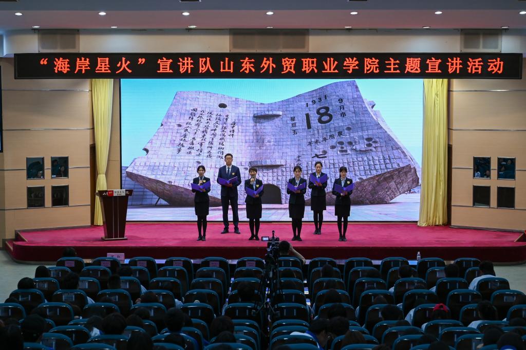 压轴登场的主题宣讲环节将活动推向高潮。党史馆宣讲员为师生带来了《浩然正气 永存世间》《铁血忠魂》《抉择》《青山埋忠骨英魂励后人》《迟归的英魂》《满门忠烈抗战魂》《烈士颂》等主题宣讲、朗诵,讲述了周浩然、王军光、赵一曼、陈振麓、贾起、袁氏家族等抗日英雄的故事。在场师生仿佛穿越时空,与革命先辈展开对话。宣讲员通过生动演绎,将红色资源转化为思政教育“活教材”,为师生献上一堂生动的党史学习教育课。