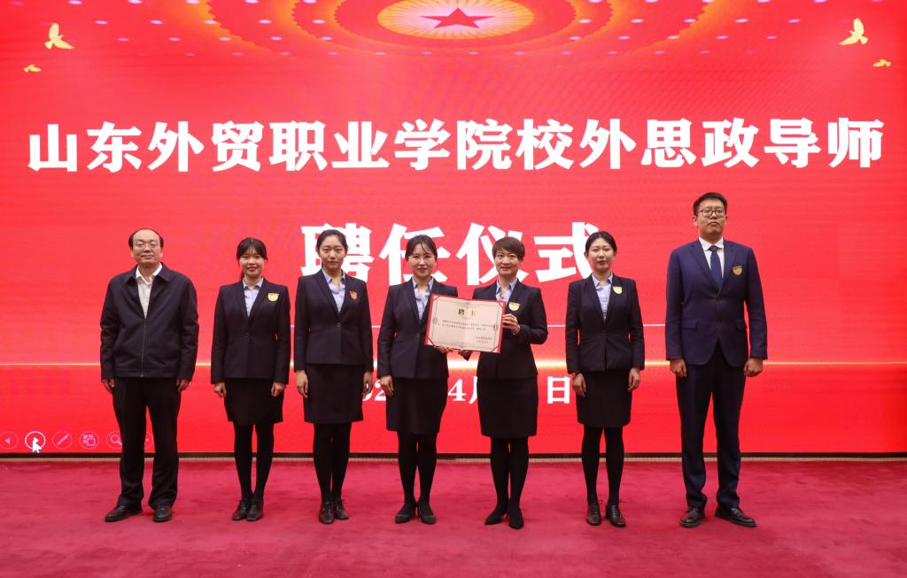 活动伊始,马克思主义学院院长季洪辉与中共青岛党史纪念馆综合科科长刘海琳共同签署共建思政课实践教学基地协议,孙光伟、宋红见签。双方约定,在课程开发、实践教学、红色文化研究等领域深化合作,推动馆内革命文物、档案史料与思政课堂深度融合,校馆双向赋能创新思政课实践教学模式,共同打造“行走的思政课”,切实增强思政育人实效。随后,孙光伟向中共青岛党史纪念馆宣讲员颁发“校外思政导师”聘书。
