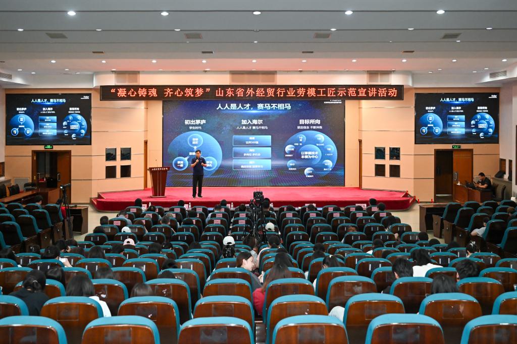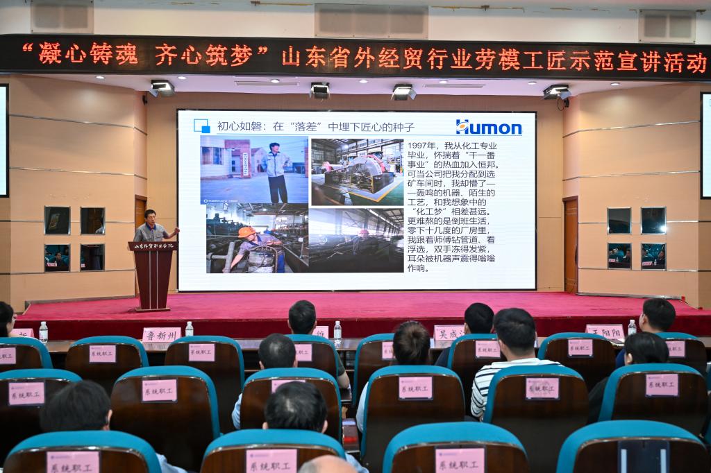 本次活动,邀请了烟台恒邦化工助剂有限公司鲁新州和青岛海尔(胶州)空调器有限公司王阳阳两位劳模工匠宣讲。两位劳模结合各自的成长经历,用质朴的语言为大家介绍了自己在平凡岗位上长期坚守、默默付出、建功立业的先进事迹,用实际行动生动诠释了劳模精神、劳动精神、工匠精神的深刻内涵。