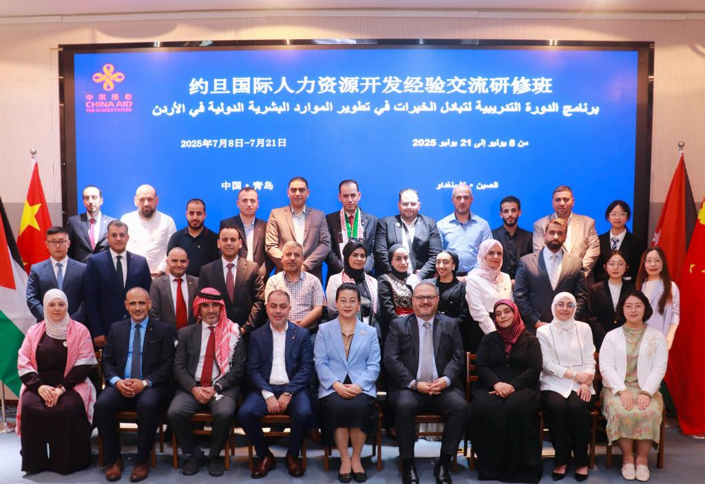 7月8日,由商务部主办、我院承办的“约旦国际人力资源开发经验交流研修班”在青岛举行开班仪式。买球体育平台刘珉院长出席开班仪式并致辞,约旦计划与国际合作部人力资源部副部长阿拉·穆罕默德·穆萨代表全体学员致辞,来自约旦的26名学员参加开班仪式。