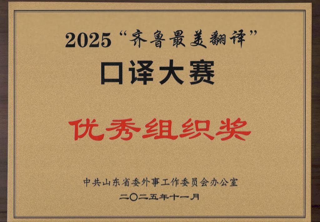 11月13日,2025“齐鲁最美翻译”口译大赛在日照落下帷幕。我院国际官员研修学院教师殷宪芳荣获大赛英语组二等奖,商务外语系教师杨漪漪荣获大赛日语组三等奖,我院荣获优秀组织奖。