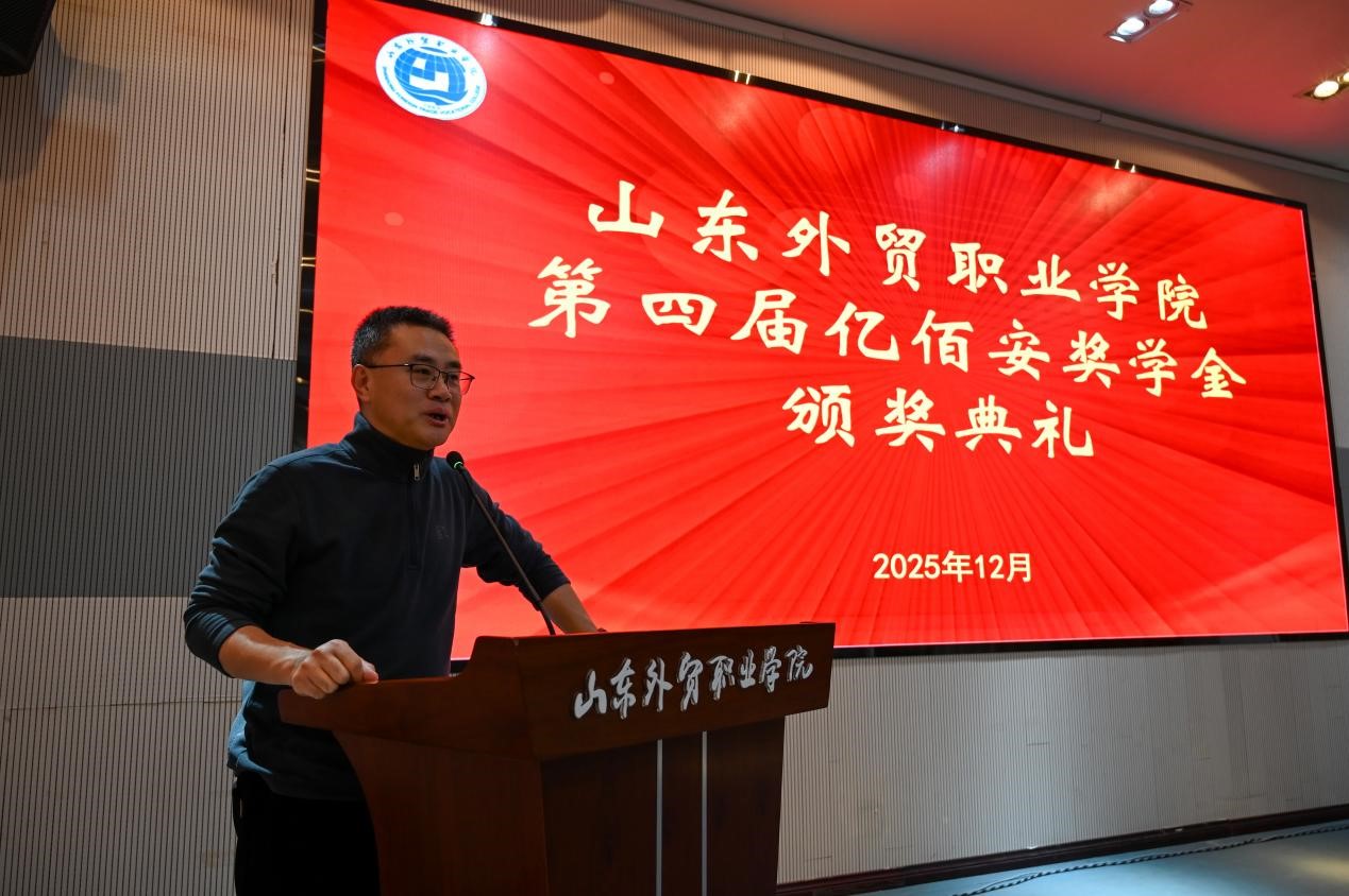 12月12日,学院第四届“亿佰安”奖学金颁奖典礼在图书馆四楼会议室举行。