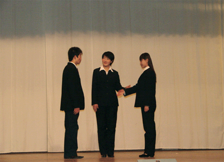 比赛分为自我展示、专业知识问答和情景表演三个步骤,考查了参赛班级有关礼仪方面的知识,05级新生组成的礼仪队进行了精彩的礼仪表演,赢得了观众的热烈掌声。最终,05文秘2班荣获冠军,05财会4班张荟菁荣获最佳解说奖。