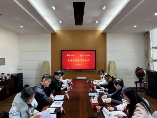 在随后举行的教师座谈会上,周健院长一行首先对我院专业课程建设情况进行了系统调研,详细了解课程设置、教学资源与实施现状。在此基础上,双方围绕虚拟教研室共建机制这一核心载体展开深入研讨,一致同意将通过该平台常态化开展联合教研、师资共培,系统推进课程衔接与教学资源共建共享。随后,副主任徐烨、唐智昊、邱明明及教师代表杨智慧、刘安琪与来宾就实训资源互换、校企合作互荐等具体合作事项交换意见,并达成初步共识。双方还重点对贯通人才培养方案中数学、英语、财务会计等核心课程的课时、内容与考核标准进行了对接研讨。周健院长在总结中强调,应依托虚拟教研室等协同平台,将课程思政有机融入培养全过程,着力塑造学生的职业道德、人工智能时代创新思维与理性职业规划能力。