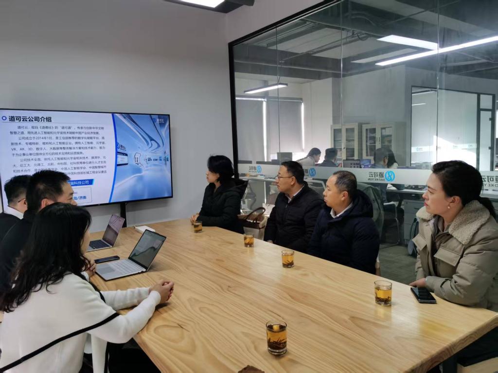 在青岛道可云网络科技有限公司,企业负责人详细介绍了公司在云计算、大数据及网络信息安全领域的技术优势和市场应用。双方就当前行业技术发展趋势、人才培养需求等议题展开深入交流,并在共建实习基地、联合开展技术研发等方面达成初步合作意向。