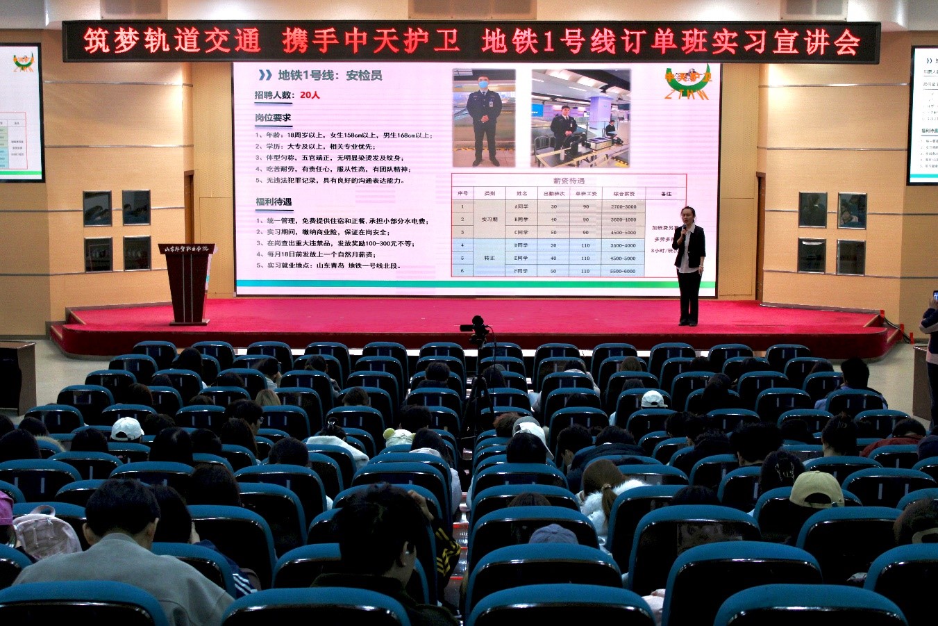 3月24日,经济管理系在学术报告厅举办“筑梦轨道交通,携手中天护卫”地铁1号线安检服务订单班宣讲动员会,经济管理系2024级部分学生参加动员会。
